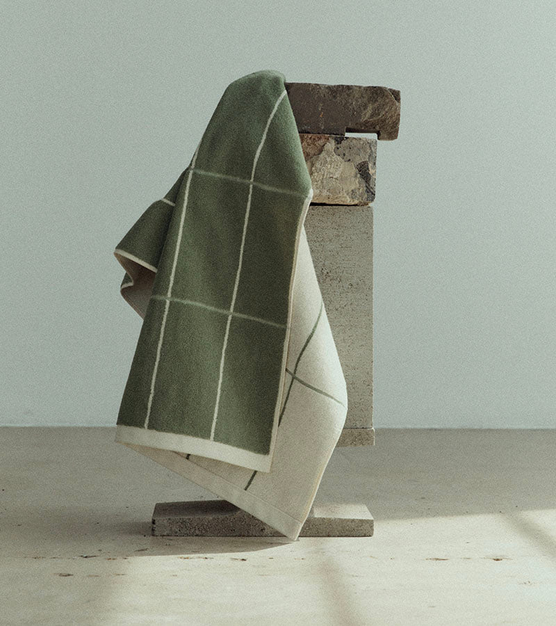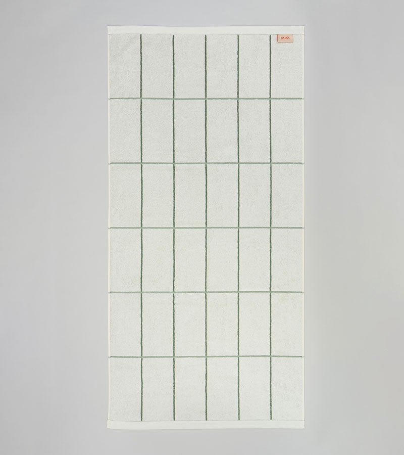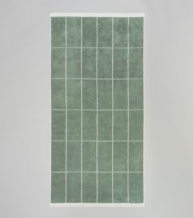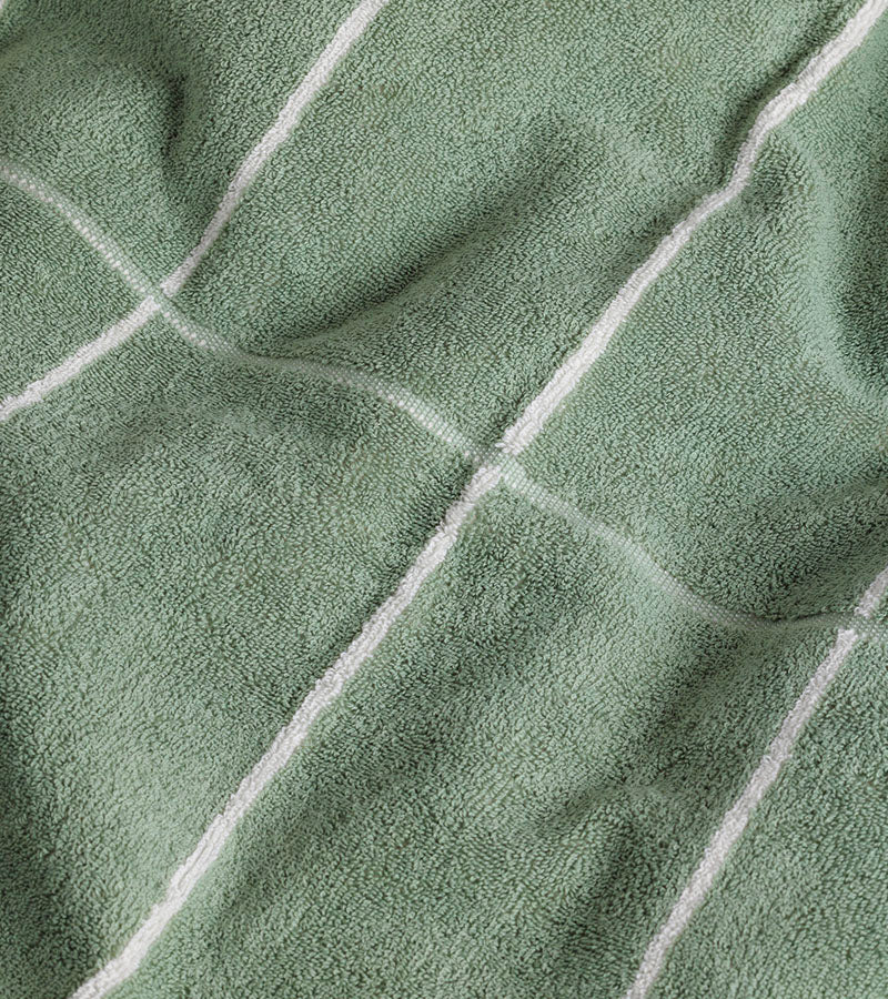 The Bethell Bath Towel in Sage & Chalk from Baina is made from 100% organic cotton and features a soft grid pattern with contrasting stitching. Luxuriously plush and absorbent, it brings a refined simplicity to your everyday bathing ritual.
