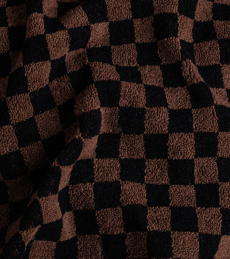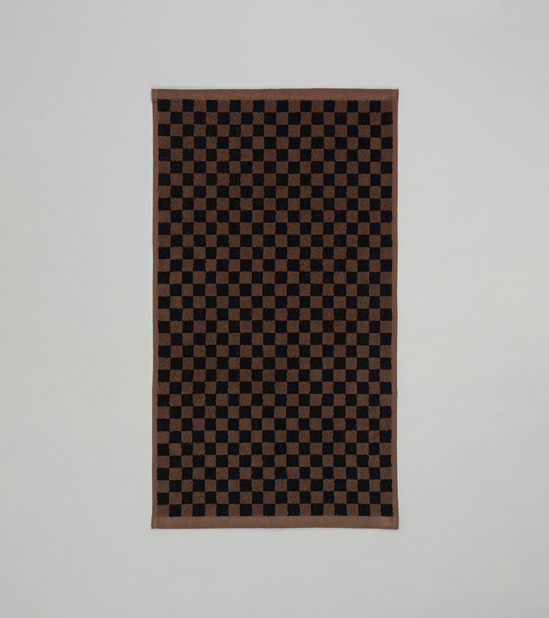 The Josephine Hand Towel in Tabac & Noir Individual from Baina is crafted from 100% organic cotton for a luxuriously soft feel. Featuring Baina’s signature checkerboard pattern in an elevated, unexpected color pairing, it brings a refined graphic touch to any bathroom ritual. Designed in the Antipodes.