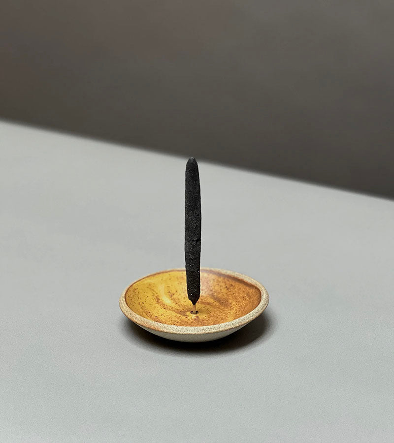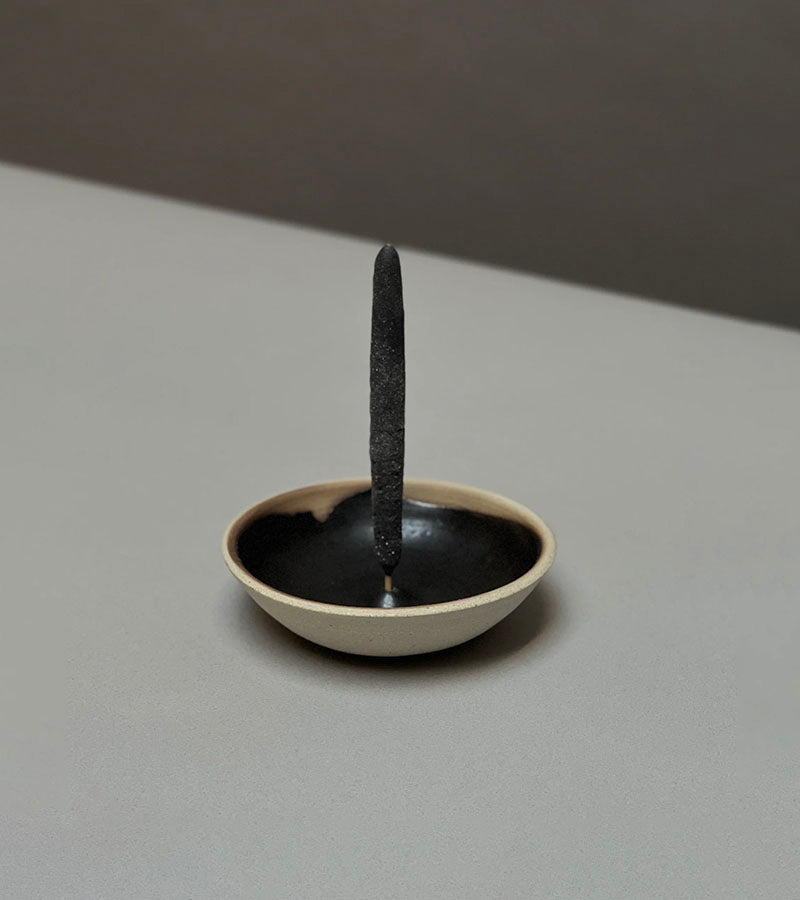 Stoneware Incense Holder from Incausa is hand-thrown from stoneware clay and fired in both wood and gas kilns, giving each piece its own natural character. Because they are individually crafted, variations in tone and texture will appear and this makes every item unique. Available in four colors — Black, Piker White, Wood Fired Shino, and Yellow.