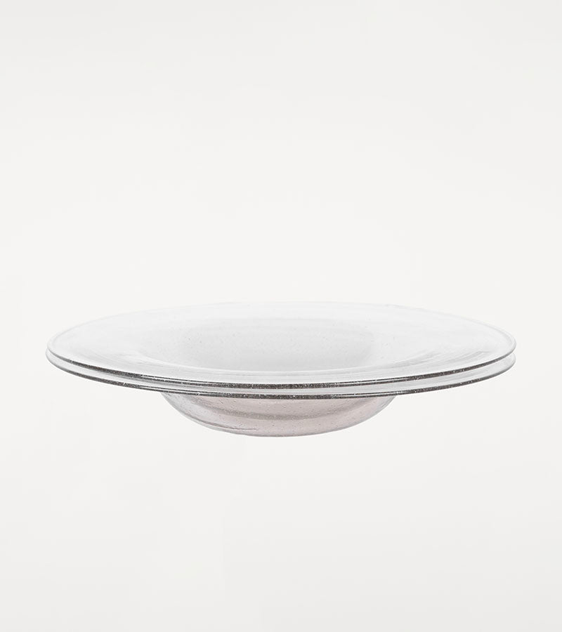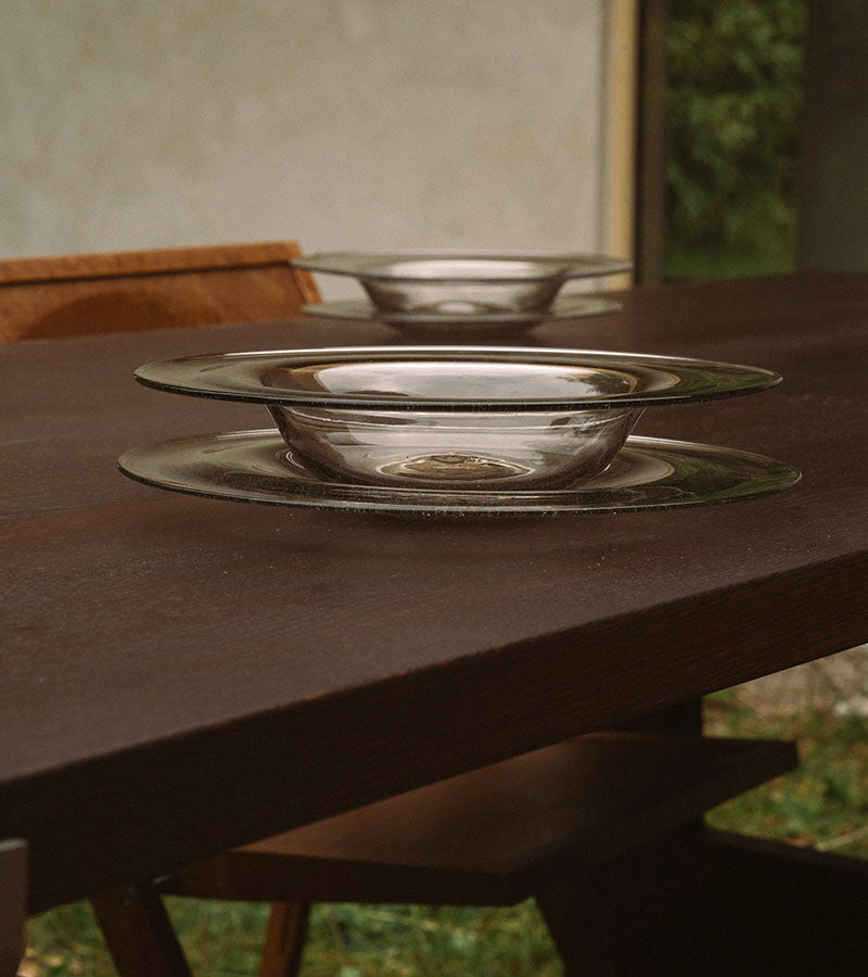 Isle Glass Plate Light Smoke from Frama is a refined take on everyday plateware, crafted in a softly smoked hue with natural bubbles that reflect its handmade origin. Produced on the island of Bornholm using 100% recycled glass, each plate carries the character of the local maker community. Finished with a subtle lip, it pairs seamlessly with the Isle Glass Shallow Bowl for a cohesive table setting.