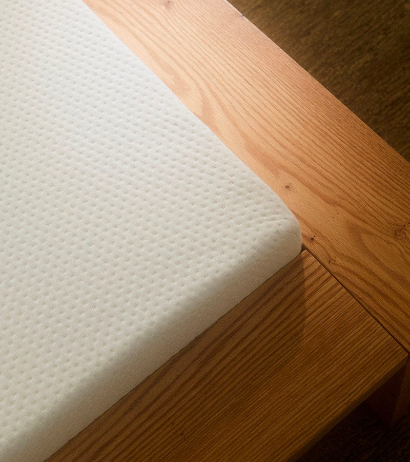 Each mattress is encased in a natural, unbleached cover made from GOTS-certified organic cotton. The textured surface offers a soft, breathable feel that promotes ventilation, supports healthy skin, and fosters a nonallergenic sleep environment.